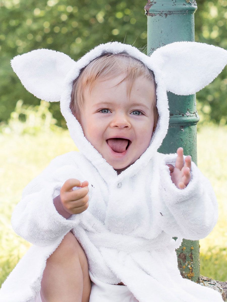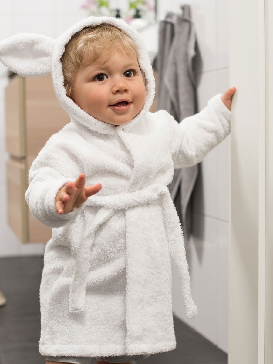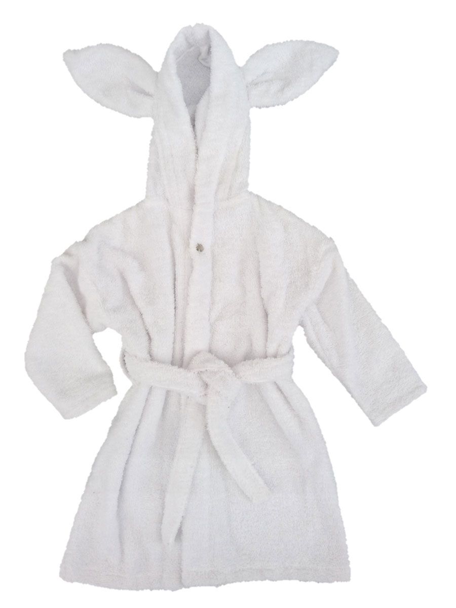 Supermjuk och lyxig Summerville -badrock med bedårande kaninöron. Handduken är gjord av ekologisk bomullsfrotté och är slät för ett barns känsliga hud. En badrock fungerar lika bra hemma efter ett bad som på stranden.