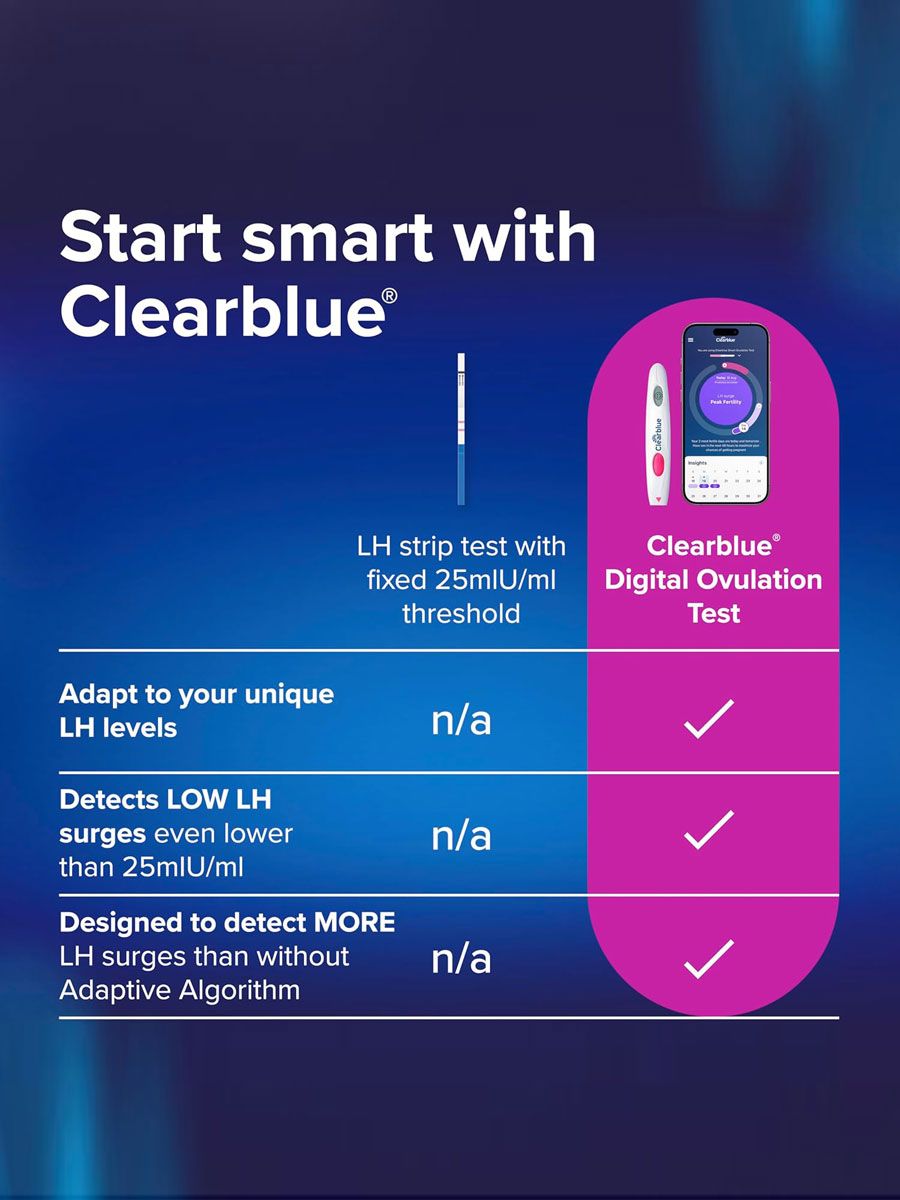 Till skillnad från traditionella teststickor ger Clearblue Digital dig ett tydligt resultat på en digital display. Du kan tydligt se när din LH-ökning har inträffat och när du är mest fertil.Detta eliminerar osäkerhet och gör testningen mer stressfri och pålitlig.