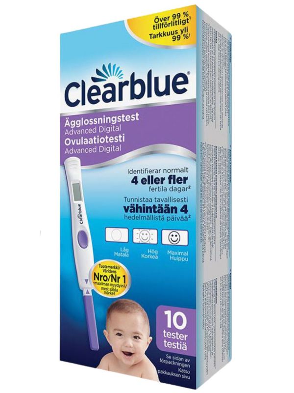 Förpackning innehåller: 10 st. Clearblue DIGITAL Dual ägglossningstest