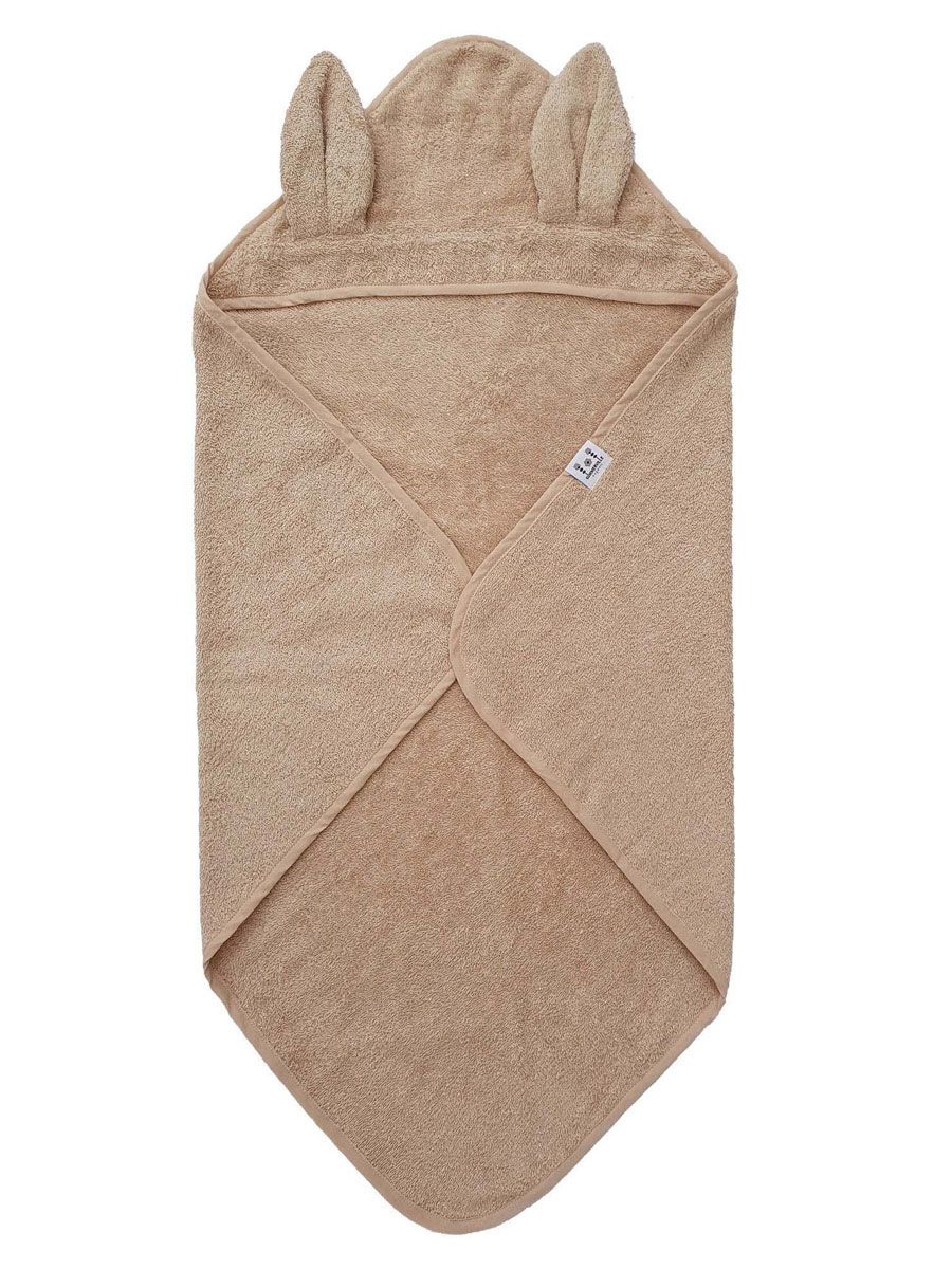 Mjuk och högkvalitativ frottéhandduk med huva för baby- eller småbarnsdusch och badstunder. Härlig kaninöredetalj på en snabbtorkande handduk.