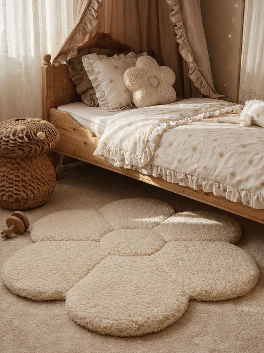 Lekmattan Daisy Flower Bouclé är designad för de stunder då en liten värld öppnar sig på golvnivå. Den mjuka, blomliknande formen och den harmoniska ecrufärgade nyansen skapar en lugn och varm atmosfär i barnkammaren, där din bebis kan leka, röra sig och växa tryggt.