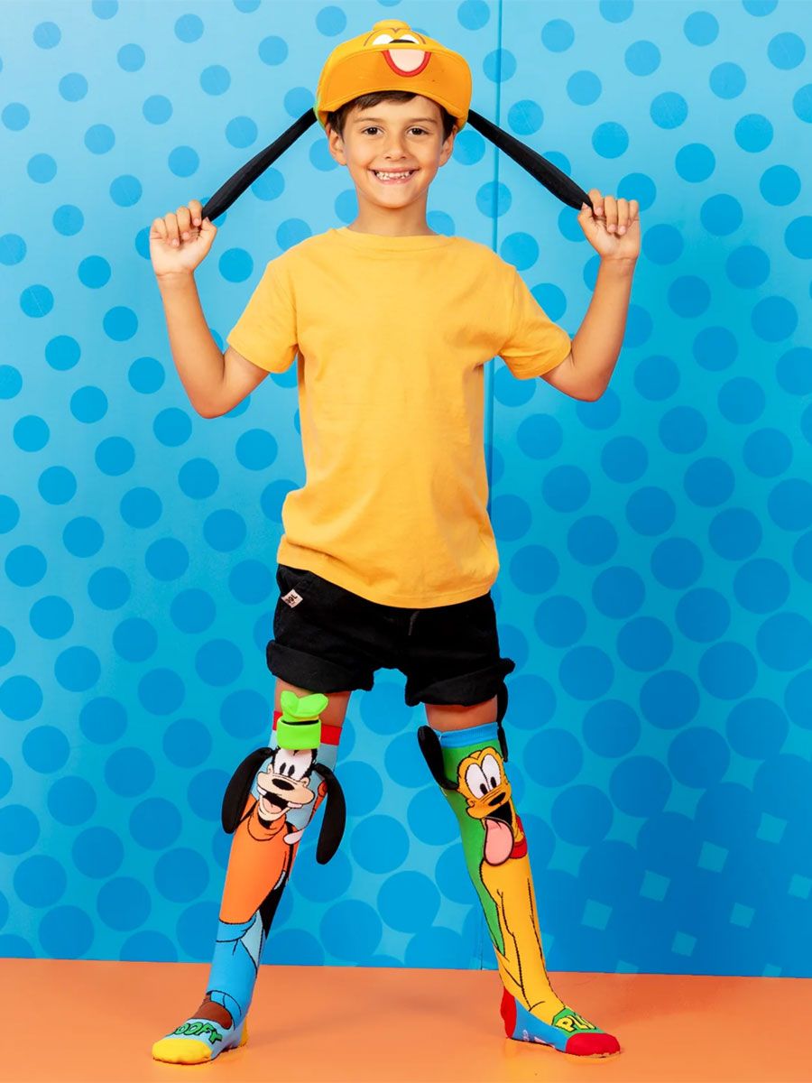 Pluto & Långbens strumpor ger Disneys glädje och humor in i varje dag. Dessa slående strumpor visar Pluto och Långben – Disneys älskade, glada karaktärer – i roliga och mjuka 3D-detaljer. Båda karaktärerna har spänstiga, fluffiga öron, och Långben kröns av sin ikoniska gröna hatt.