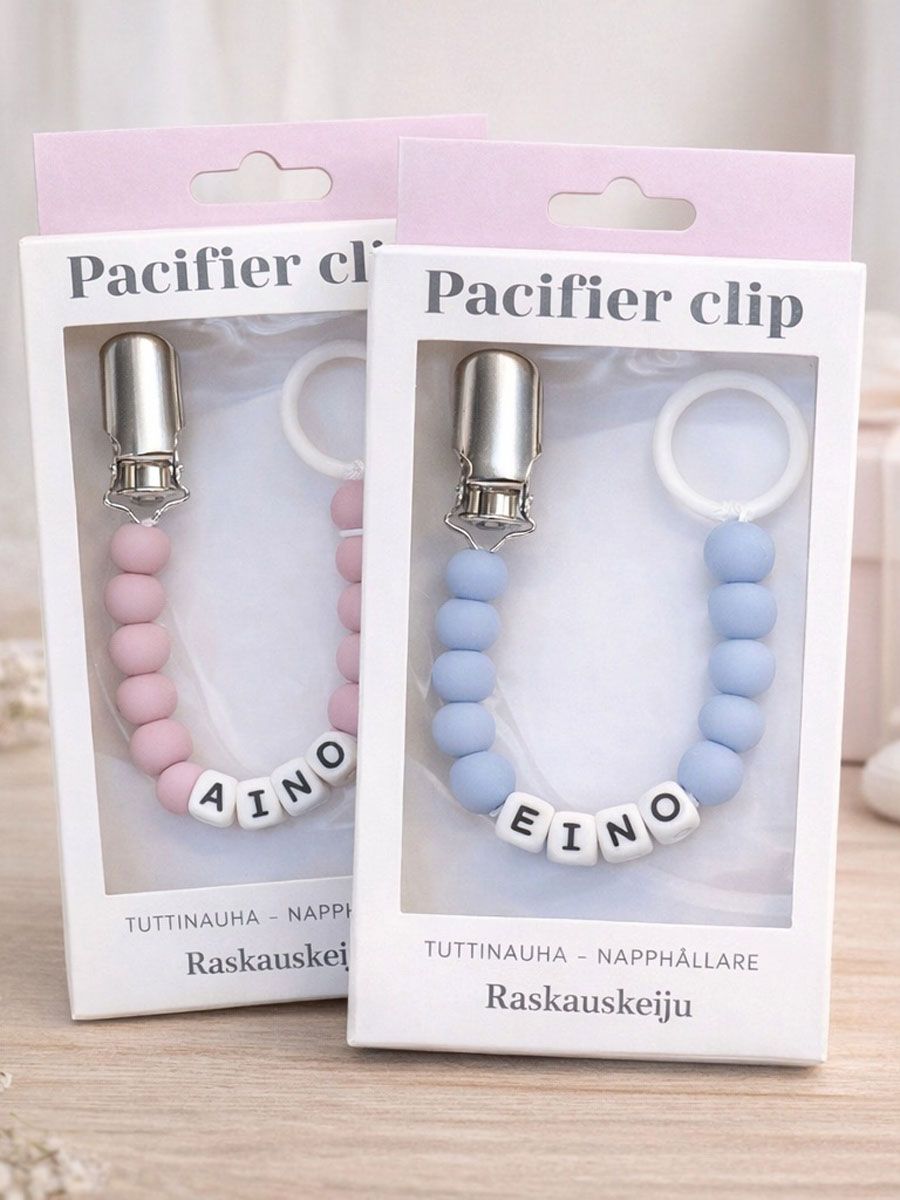 Vår trendiga, säker och god kvalitet napphållare. Napphållare håller nappen nära barnet. Napphållare förhindrar droppande, när nappen ofta blir smutsiga eller förloras. Napphållare är gjord av säkra BPA-fri mat silikon pärlor och ring. Metallclip fastsättning. Handtvätt med varmt tvålvatten .