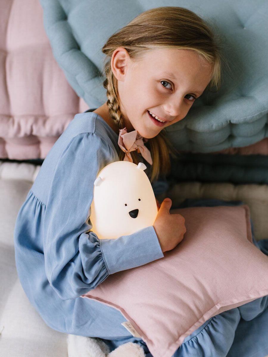 Nallebjörnslampan lyser i sju olika färger, så du kan välja en lugnande nattlampa eller använda den som stämningsbelysning i barnrummet. När den är fulladdad har lampan en drifttid på upp till 12 timmar, så den räcker för hela natten utan att laddas om.
