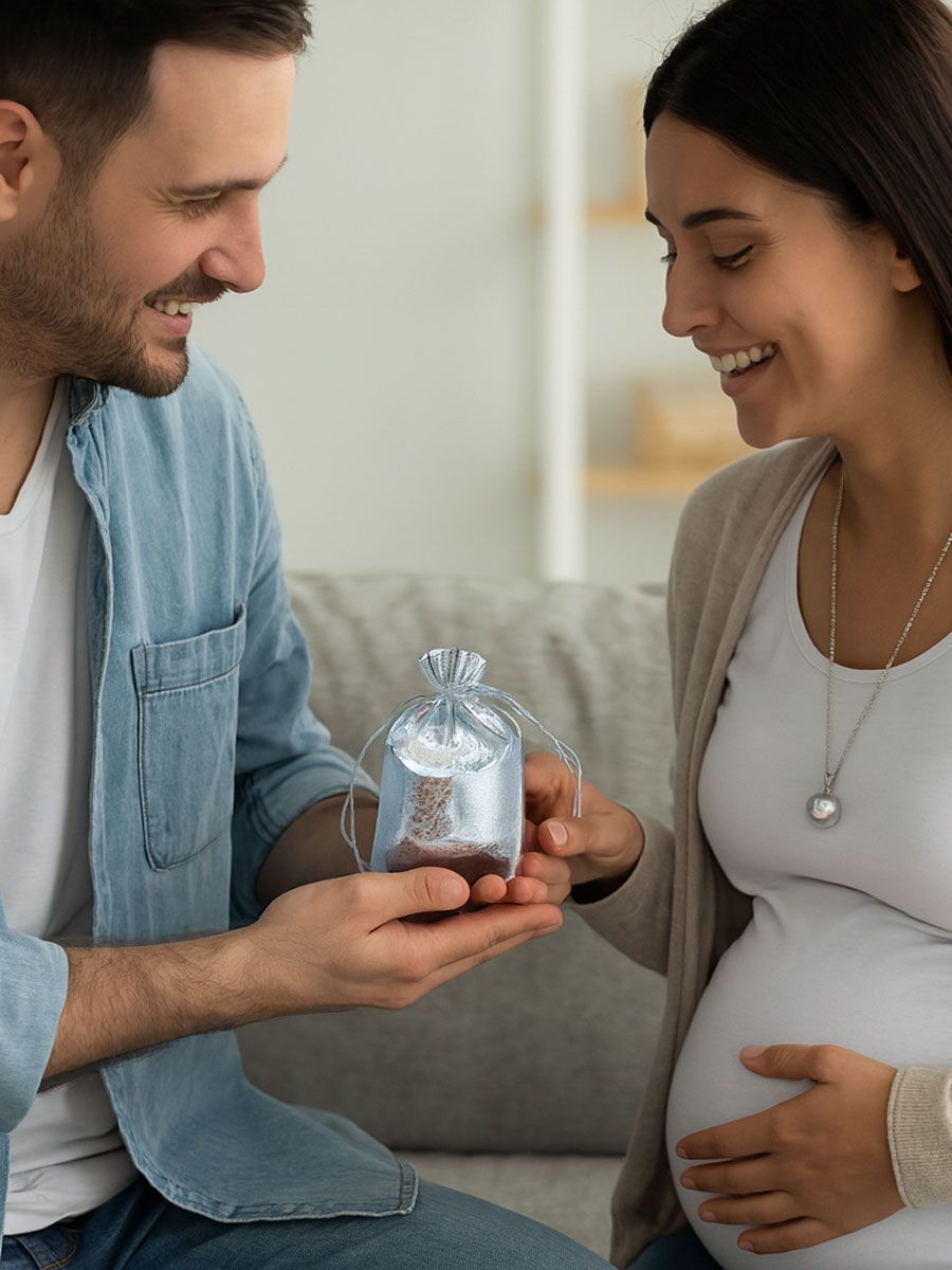 Presentpåse till Bolan - perfekt om du ska ge bort den som present till en förväntansfull mamma! Du kan också behålla din Bola smycke i påsen.