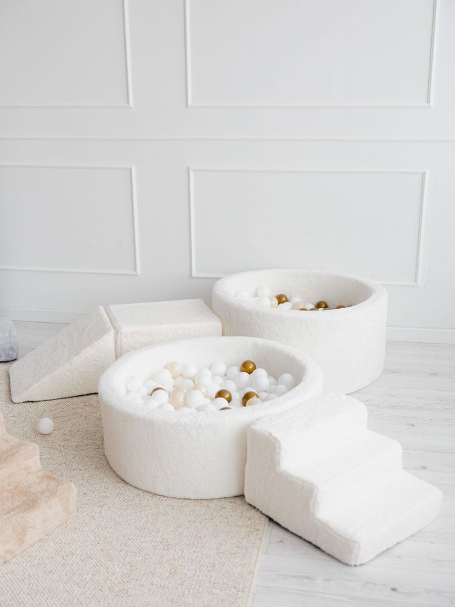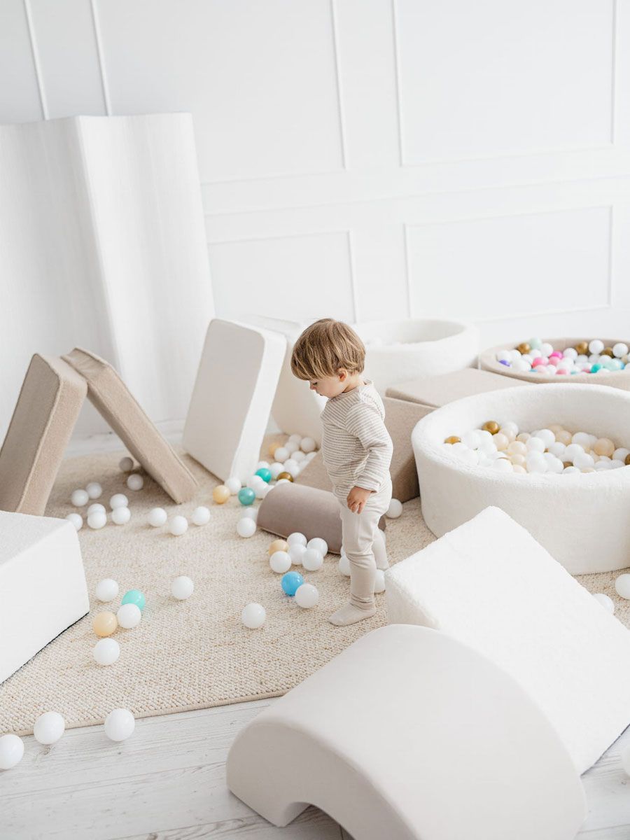 Det vadderade bollhav och leksetet – Nallebjörn Ecru är den perfekta lösningen för ett hem som värdesätter mjuka material, säkerhet och utvecklande lek.