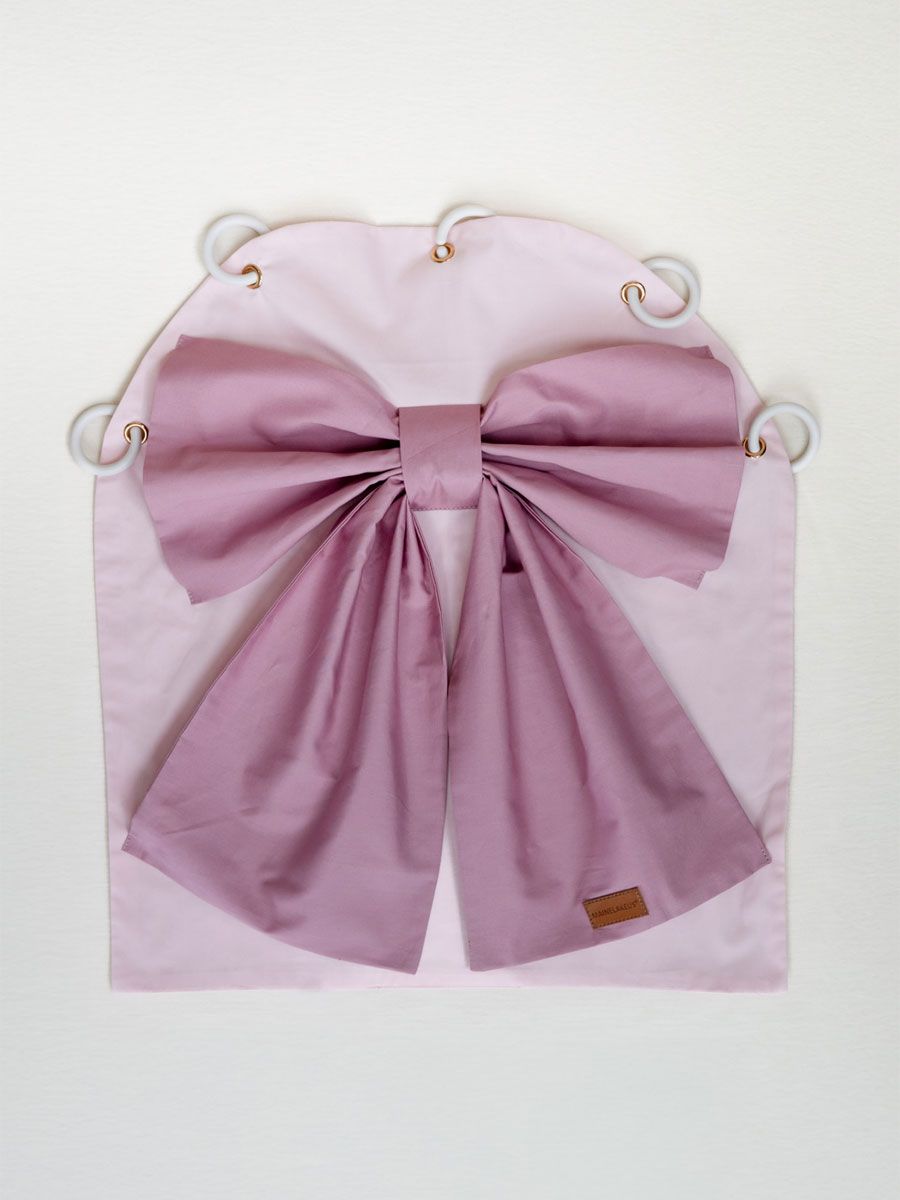 Det finns hål högst upp på draperiet, till vilka man kan lägga till fästringar om man vill. Ringarna levereras i en nyans som matchar färgen, och de gör det enkelt att fästa draperiet på olika modeller av barnvagnar, sittvagnar och bilbarnstolar.