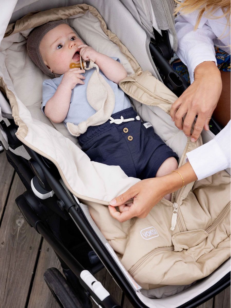 Voksi Sky Light-vagpåsen är en lätt, andningsbar och mångsidig termospåse för spädbarn och småbarn. Den anpassar sig till vardagslivet från bilbarnstolar till barnvagnar och fungerar perfekt från vår till höst. Den levereras med en förlängningsdel som förlänger påsens livslängd.