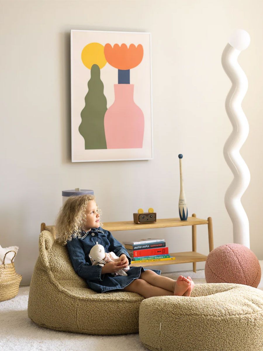 Sätt dig ner i en mjuk sagovärld! Den söta säckstolen är ett perfekt komplement till barnrummet såväl som i hemmets alla hörn där det behövs en söt sits för minien.